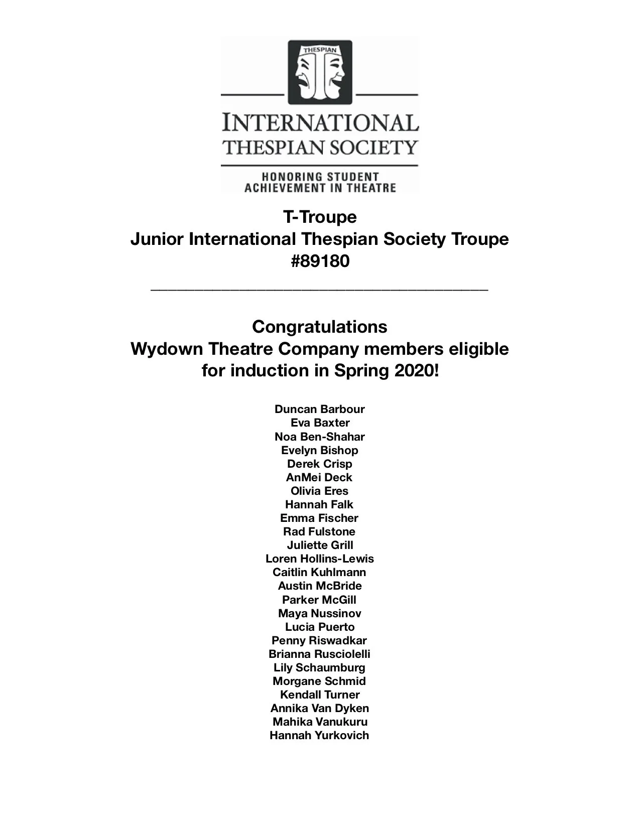 the Junior International Thespian Society. This organization is the student honorary